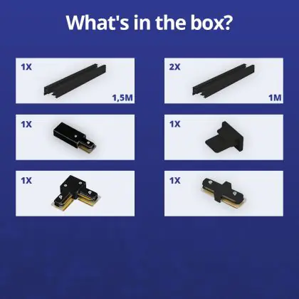 Bright Choice Rail Set 1-Fase L 1,5 x 2 Metro Nero | incl. Tappo Di Chiusura, Connettore di Alimentazione e L -Connettore