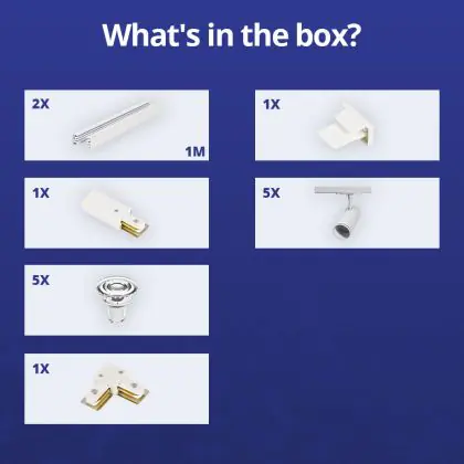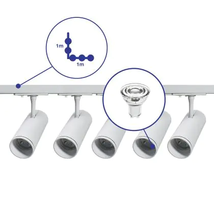 Descrizione Bright Choice Set completo 1-Fase Rail L 1 x 1 Metro Bianca | incl. 5x Faretti + GU10 2700K 3W Dimmerabile + 1 x 1 Metro Tappo Di Chiusura, Connettore di Alimentazione e L -Connettore
