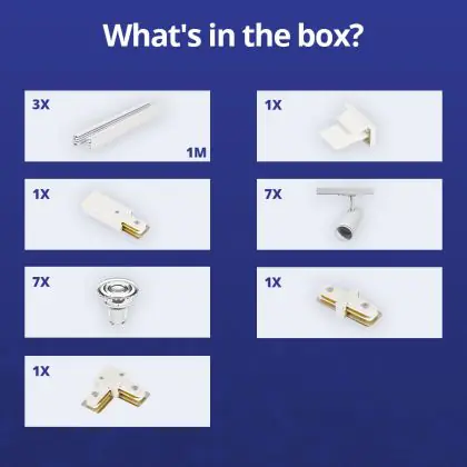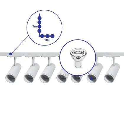 Descrizione Bright Choice Set completo 1-Fase Rail L 1 x 2 Metro Bianca | incl. 7x Faretti + GU10 2700K 3W Dimmerabile + Tappo Di Chiusura, Connettore di Alimentazione e L -Connettore