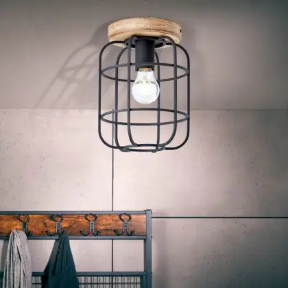 Brilliant Gwen Luce da soffitto Metallo Legna Nero | 200mm - Adatto per 1x E27