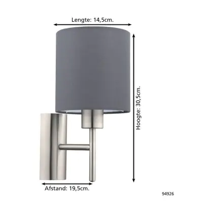 Eglo Luce Da Parete Pasteri Acciaio Nichel Satinato | IP20 - Adatto per 1x E27