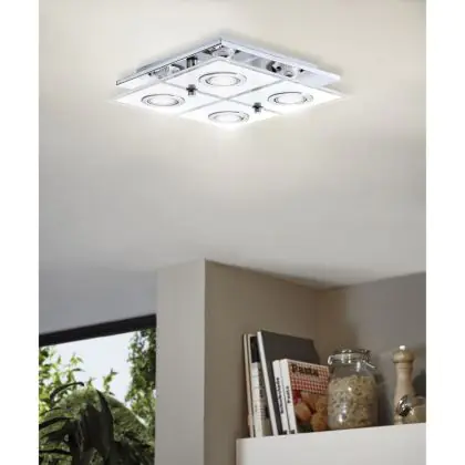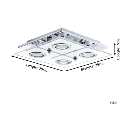 Eglo Luce da soffitto Cabo Acciaio Inossidabile Cromo 4x2.8W 4x250lm - 830 Luce Calda - | IP20 - Incl. 4x GU10