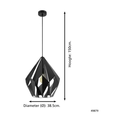 Eglo Luce Pendente Carlton 1 Acciaio Nero Argento | IP20 - Adatto per 1x E27