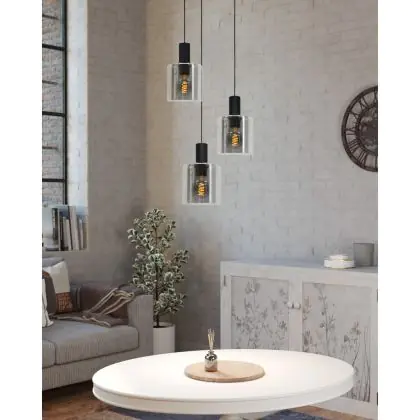 Eglo Luce Pendente Gorosiba Acciaio Nero | IP20 - Adatto per 3x E27