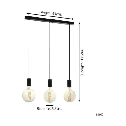 Eglo Luce Pendente Pozueta Acciaio Nero | IP20 - Adatto per 3x E27