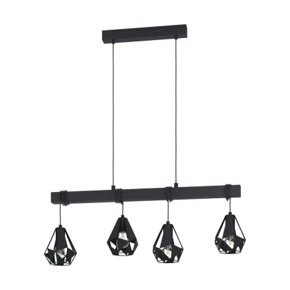 Eglo Luce Pendente Townshend 7 Acciaio Legna Nero | IP20 - Adatto per 4x E27