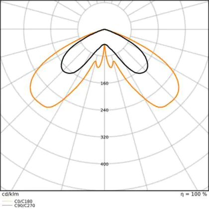 Questa lampada LED viene spesso usata per illuminare in modo ottimale aree piuttosto grandi. A questo scopo, serve un apparecchio che abbia alto rendimento luminoso in quanto maggiore è il rendimento luminoso, più grande è la superficie illuminata. Questo apparecchio emette una luce con potenza luminosa di 4800 lm e il rapporto lumen/watt di efficienza luminosa è di lm/W. Questo significa che l'apparecchio consuma poca energia per la quantità di luce che genera!