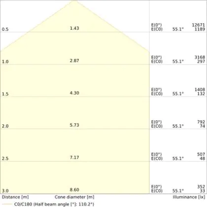 ![]() Il codice colore è una combinazione di resa cromatica (CRI) e colore della luce (Kelvin). La prima cifra indica la resa cromatica (1 = resa del colore molto bassa, 9 = massima resa del colore), mentre la seconda e la terza si riferiscono al colore della luce. Esempio: il codice colore 830 indica una buona resa cromatica (8) e luce bianca calda (3000K). |