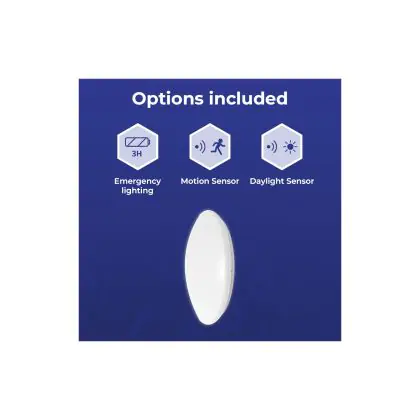 Descrizione Noxion Bulkhead LED Corido V2 Bianca 12W 1200lm 830-840-865 CCT | IP44 - Emergenza 3h - Sensore di Movimento e Luce