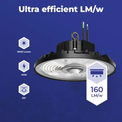 La tecnologia LED è la scelta giusta sia dal punto di vista ambientale che economico, infatti questa lampada industriale LED ha una potenza luminosa di 16000 lumen e consuma 100 watt, che può arrivare ad essere fino al 70% in meno rispetto ad altri apparecchi con tecnologie diverse. Inoltre, i LED non sostengono sostanze nocive e alla fine del loro ciclo di vita di circa 100000 ore possono essere riciclati! Questa lampada è protetta da una garanzia di 4 anni.