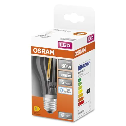 Descrizione Osram Classic LED E27 Pera Filamento Chiara 6.5W 806lm - 865 Luce Del Giorno | Sostitutiva 60W