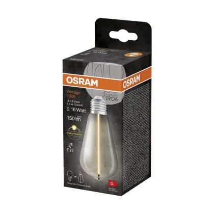 La Osram Vintage 1906 LED E27 Special Filamento Chiara Edison 2.2W 150lm - 827 Bianco Molto Caldo | Sostitutiva 15W è la perfetta sostituzione per la tua lampada convenzionale 15W con attacco E27 grazie alla sua tecnologia LED. Passare a LED ti offrirà tanti vantaggi!